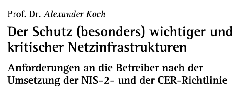 In der aktuellen Ausgabe der Netzwirtschaften & Recht (Heft 1/2026) ist ein Aufsatz von mir zum Thema „Der Schutz (besonders) wichtiger und kritischer Netzinfrastrukturen – Anforderungen an die Betreiber nach der Umsetzung der NIS-2- und der CER-Richtlinie“ erschienen.