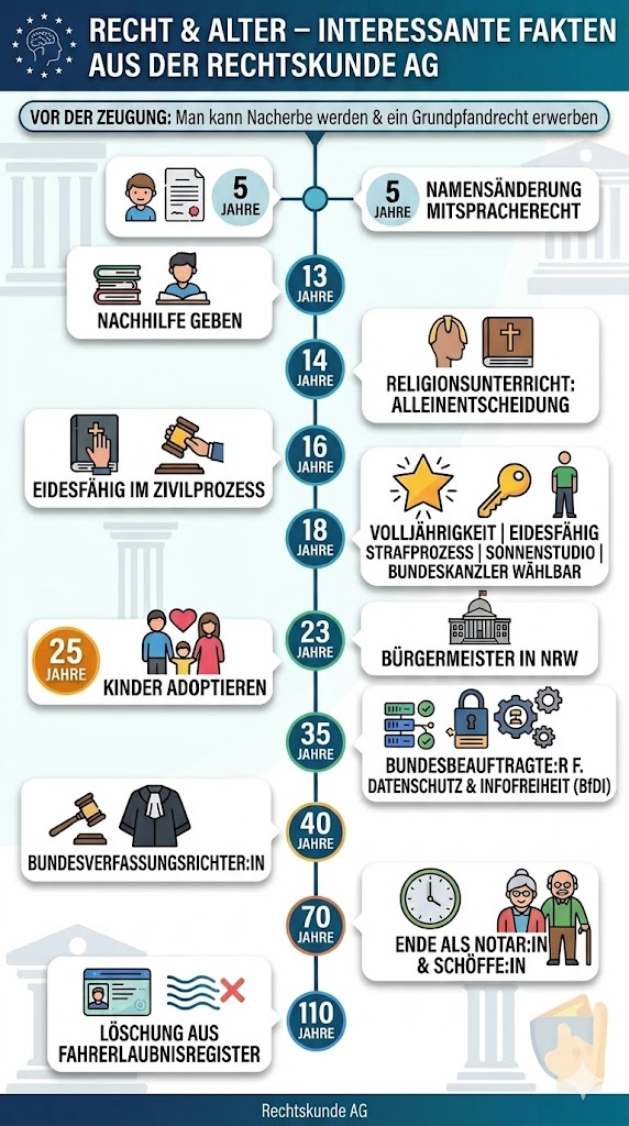 Vor der Zeugung kann man Nacherbe werden und ein Grundpfandrecht erwerben – mit 110 Jahren wird man aus dem Fahrerlaubnisregister gelöscht!